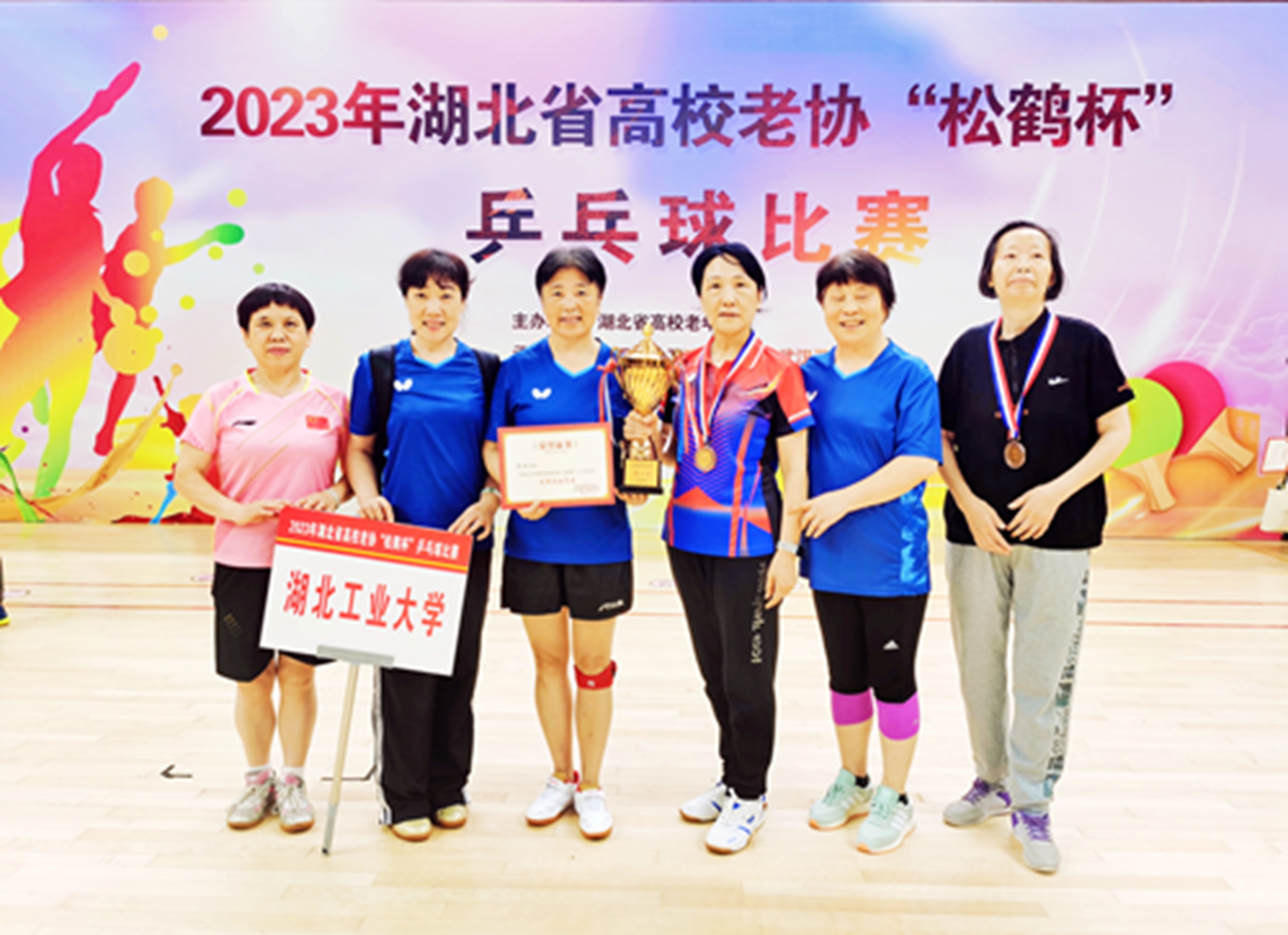 2023年湖北省高校老协“松鹤杯”乒乓球比赛经过三天激烈角逐,于7月4日在武汉软件工程职业学院(武汉开放大学)落幕,离退休工作处组织选派2支乒乓球队参加比赛,在团体、个人单打比赛中取得可喜成绩,荣获团体冠军1项,分获单打第三名、第五名各1项,并获“体育道德风尚奖”。