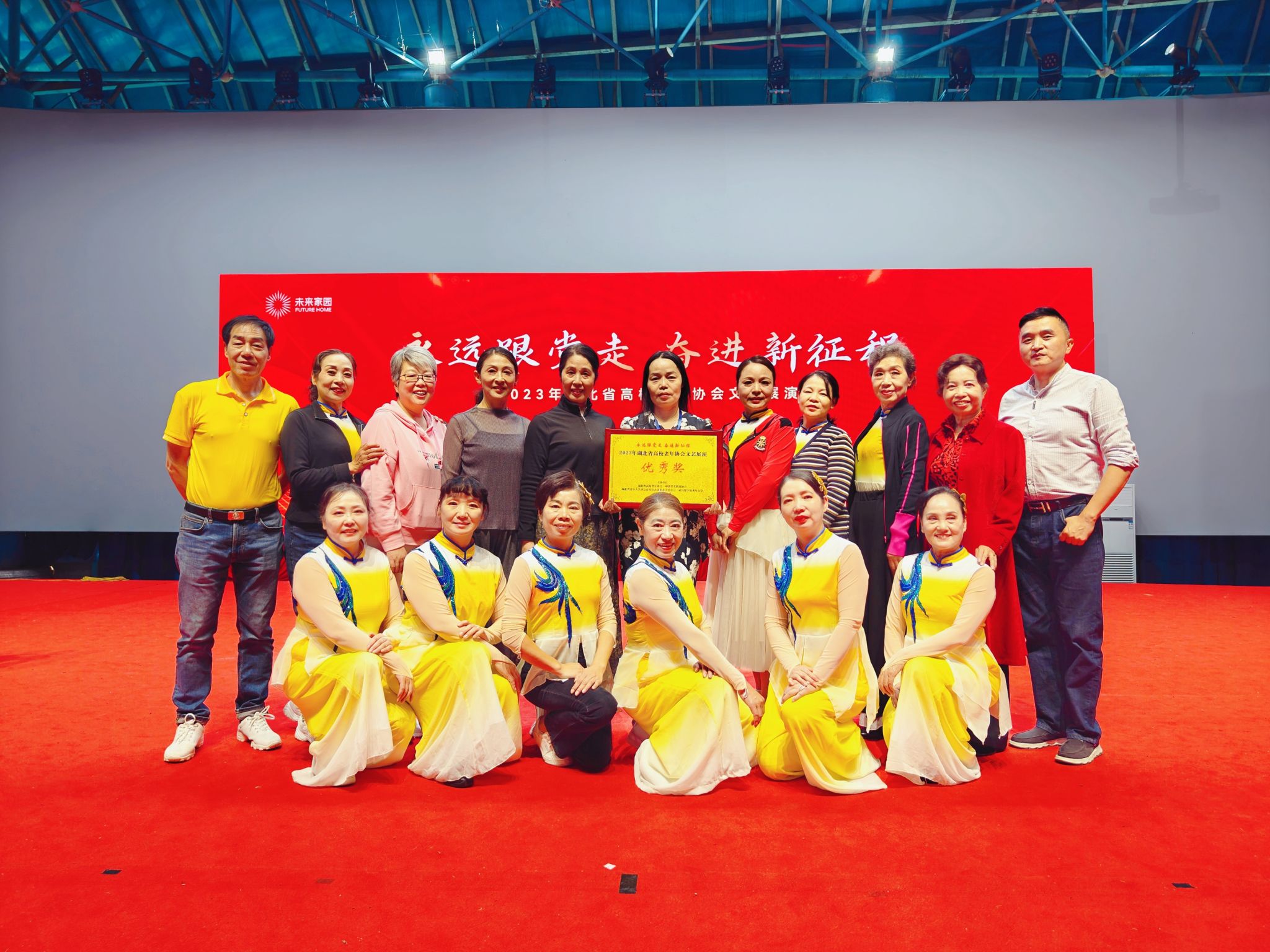 10月21日,由湖北省高校老年协会、湖北省老教授协会、湖北省老年大学协会高校和企事业办学委员会、武汉数字化老年大学主办,湖北未来家园高科技农业股份有限公司承办的“永远跟党走 奋进新征程”2023年湖北省高校老年协会文艺展演和颁奖大会在湖北未来家园现代农业园举行。我校老年大学选送的舞蹈《我的祖国》喜获最高奖优秀奖。
