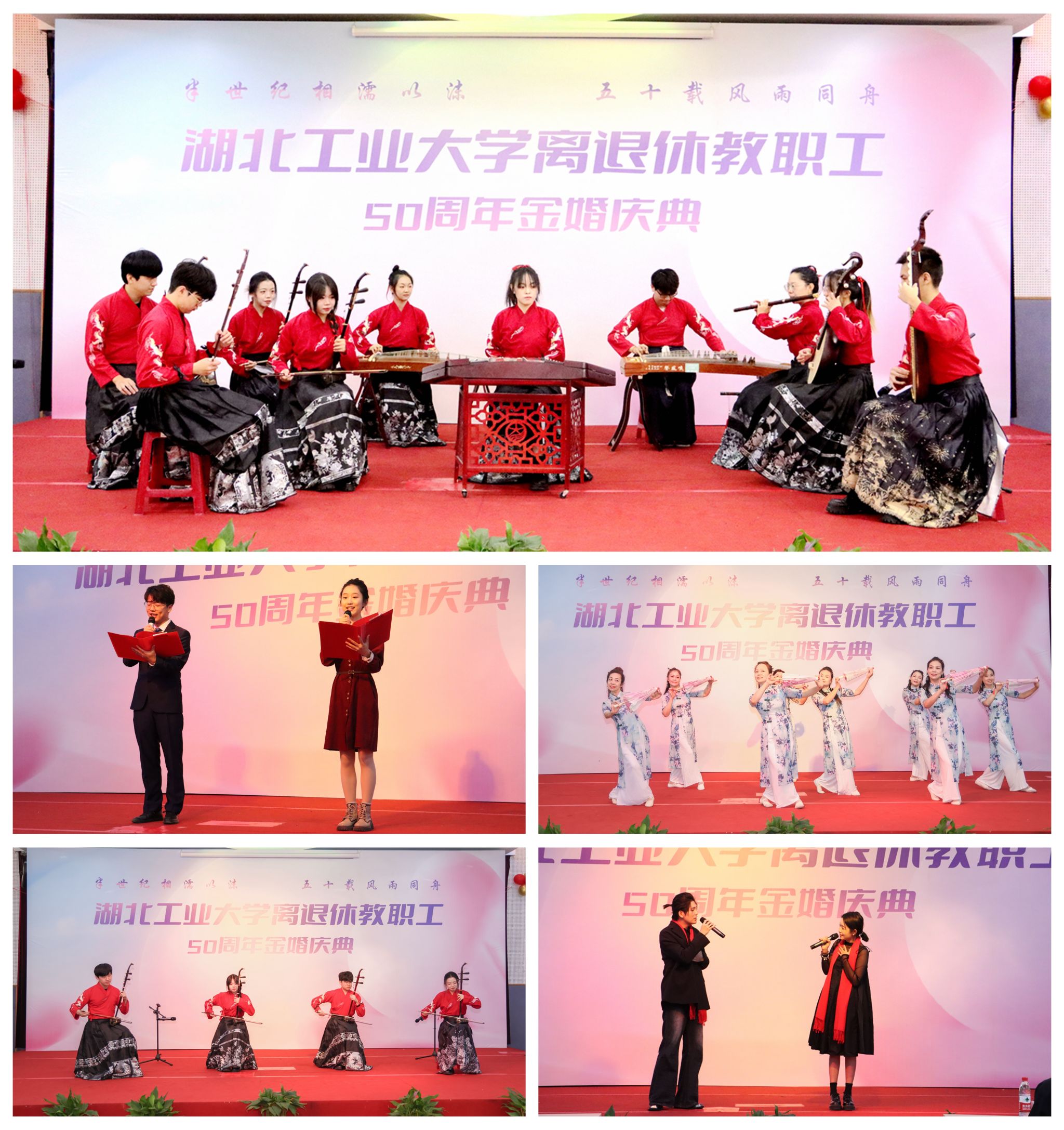 活动最后,冯征、蔡光兴为金婚夫妇代表赠送了慰问品。校大学生艺术团和春天艺术团以歌舞、朗诵、民乐演奏等形式为金婚夫妇献上了祝福。