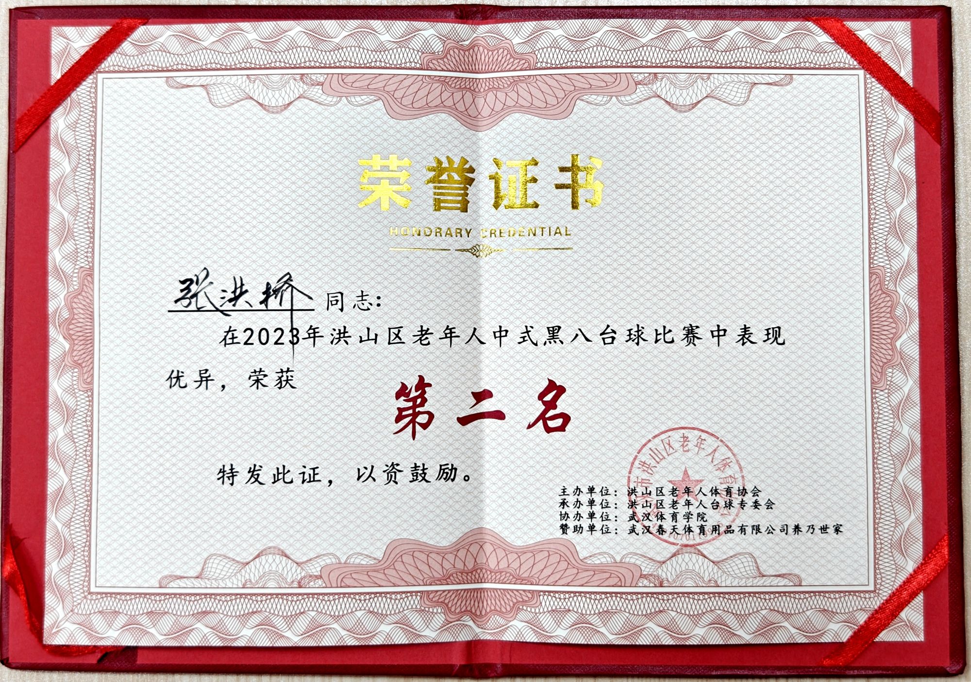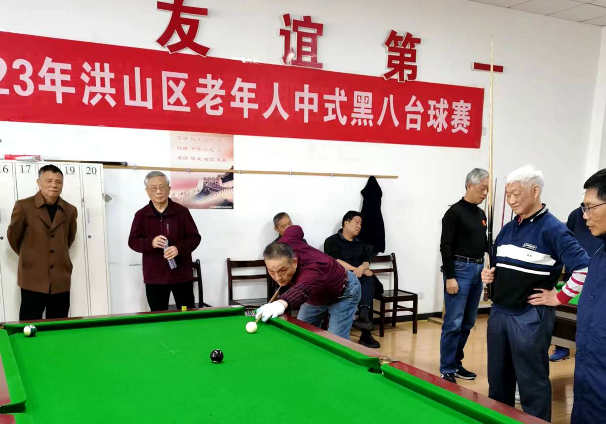 2023年洪山区老年人中式黑八台球赛经过激烈角逐,于11月25日在武汉体育学院落幕,我校老年台球队张洪桥获得亚军,为我校老同志争得新的荣誉。