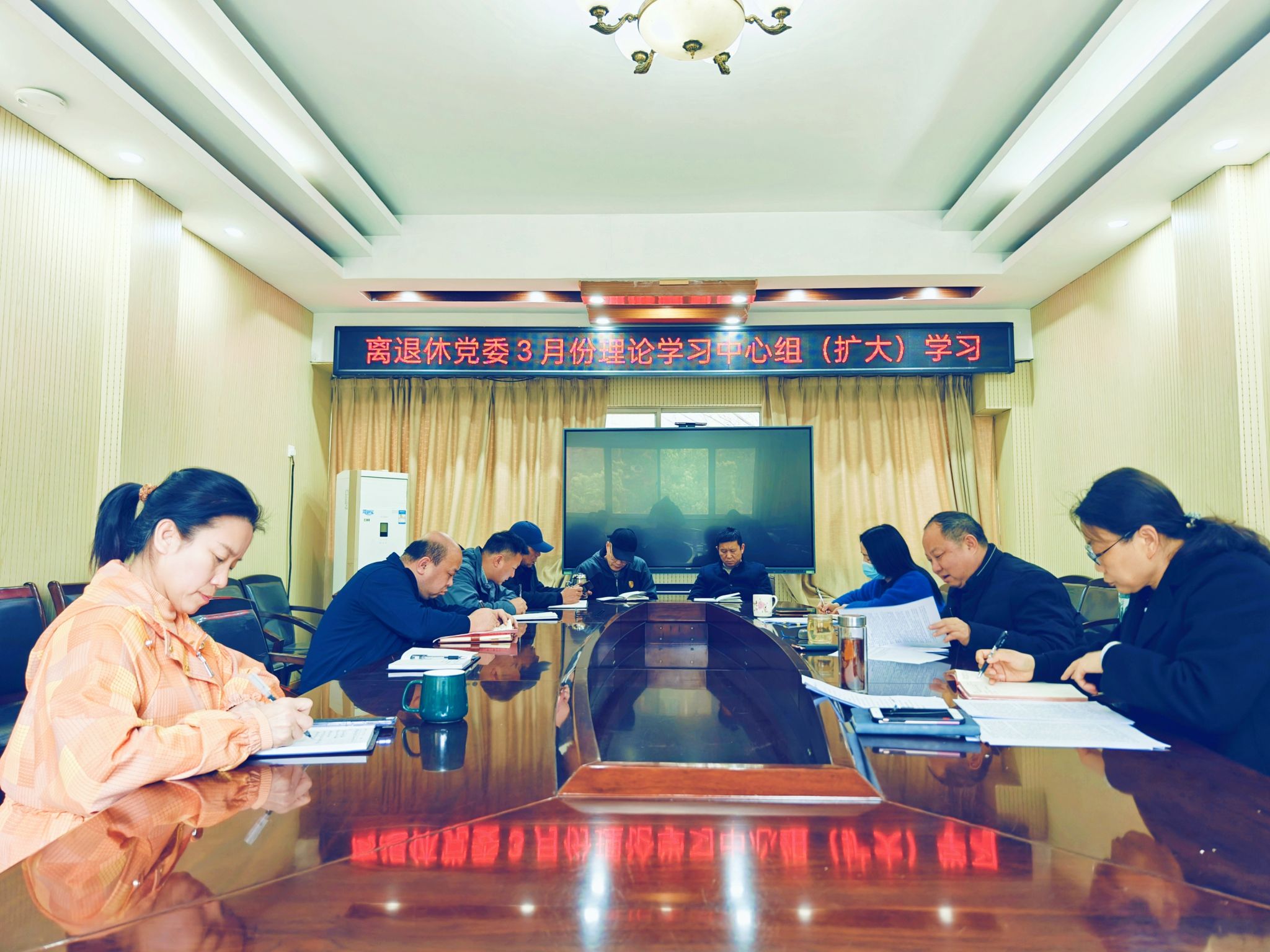 3月25日下午,离退休党委理论学习中心组举行扩大学习会,跟进学习2024年全国两会精神、习近平总书记近期重要讲话精神和重要文章,专题学习最新涉老政策及文件。离退休党委书记李万成主持学习。