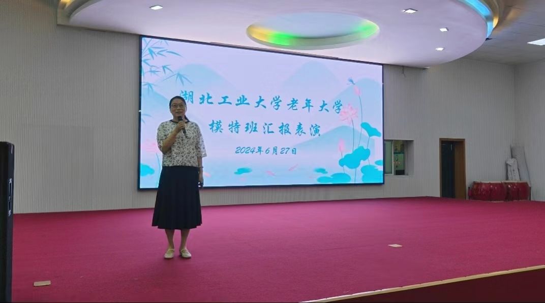 6月27日上午,湖北工业大学老年大学模特班在教职工活动中心综艺厅举行2024年春季结业成果展示。校老年大学校长蔡光兴、离退休工作处处长杨晓云、副处长陈子珍、模特班任课教师及全体学员参加了活动。