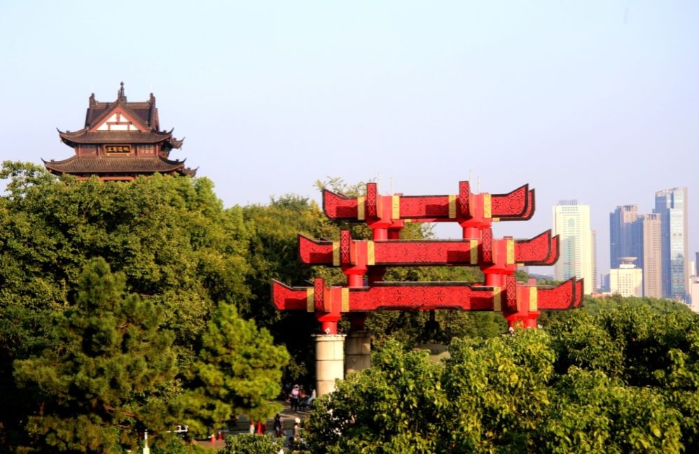 黄鹤楼是一座雄伟高大的建筑,与岳阳楼、滕王阁并称为我国江南三大名楼。