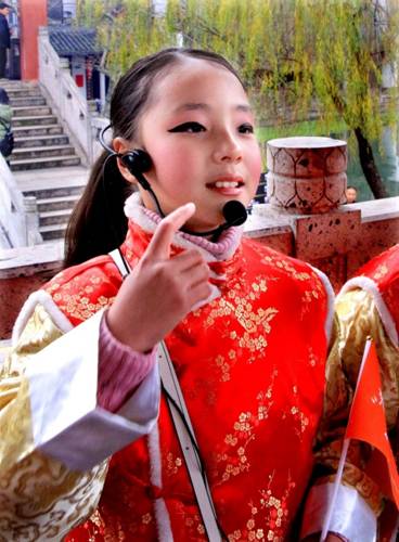 本人来到绍兴市安昌镇,首先遇到小学生义务导游,从她落落大方,说词条理清晰表现了江南人文素质很高水平。
